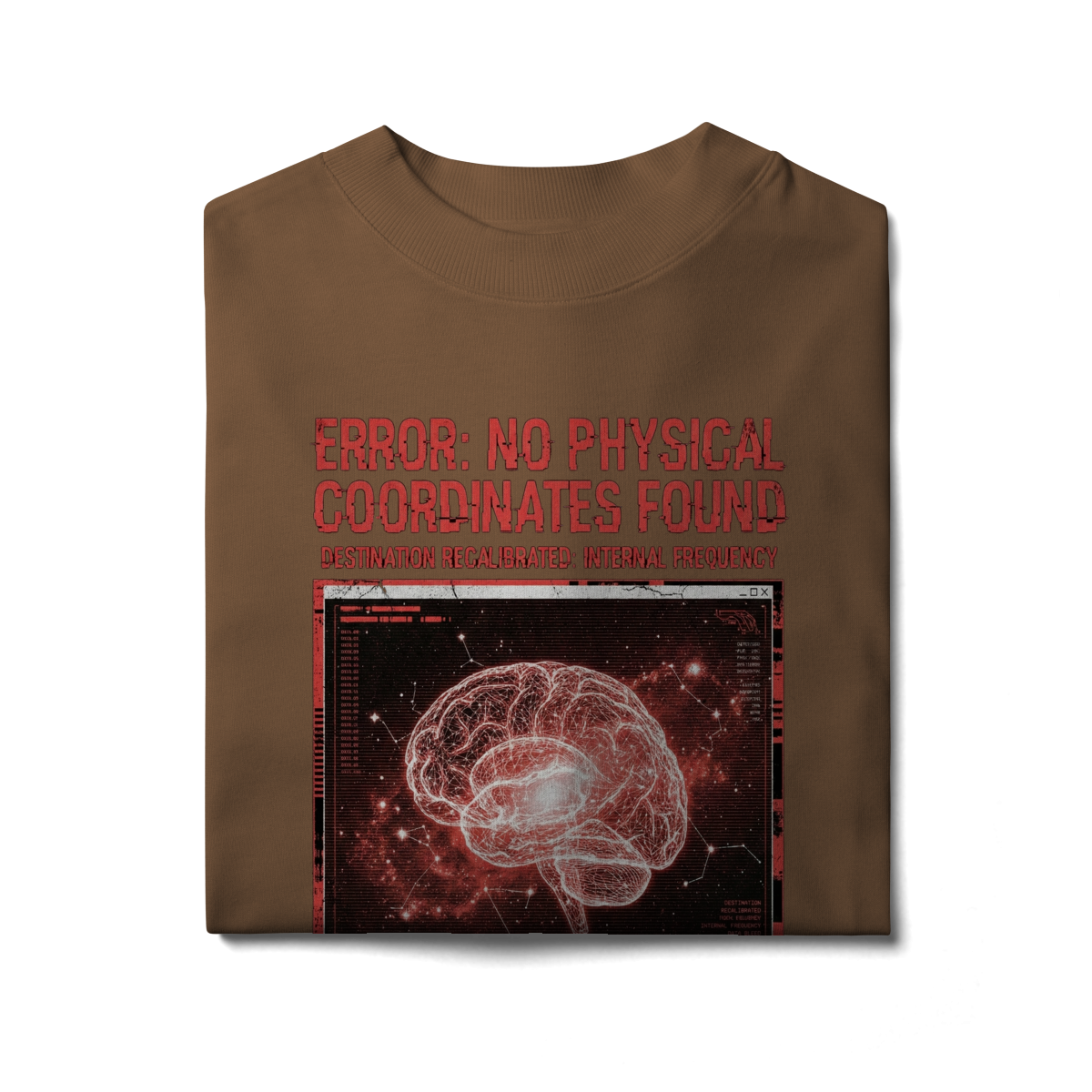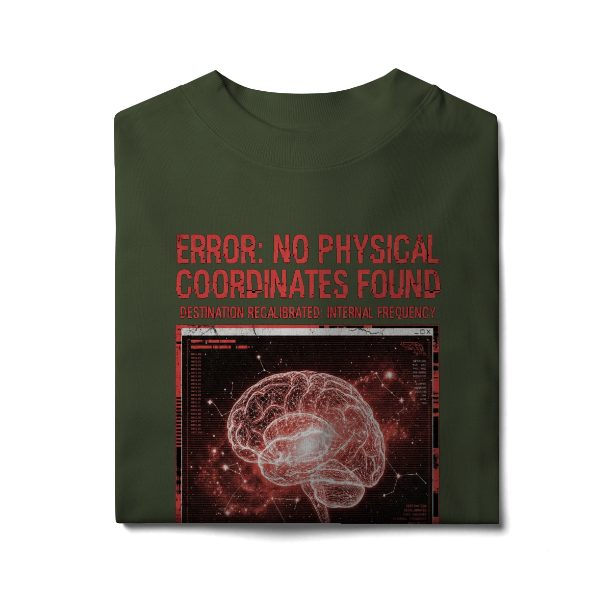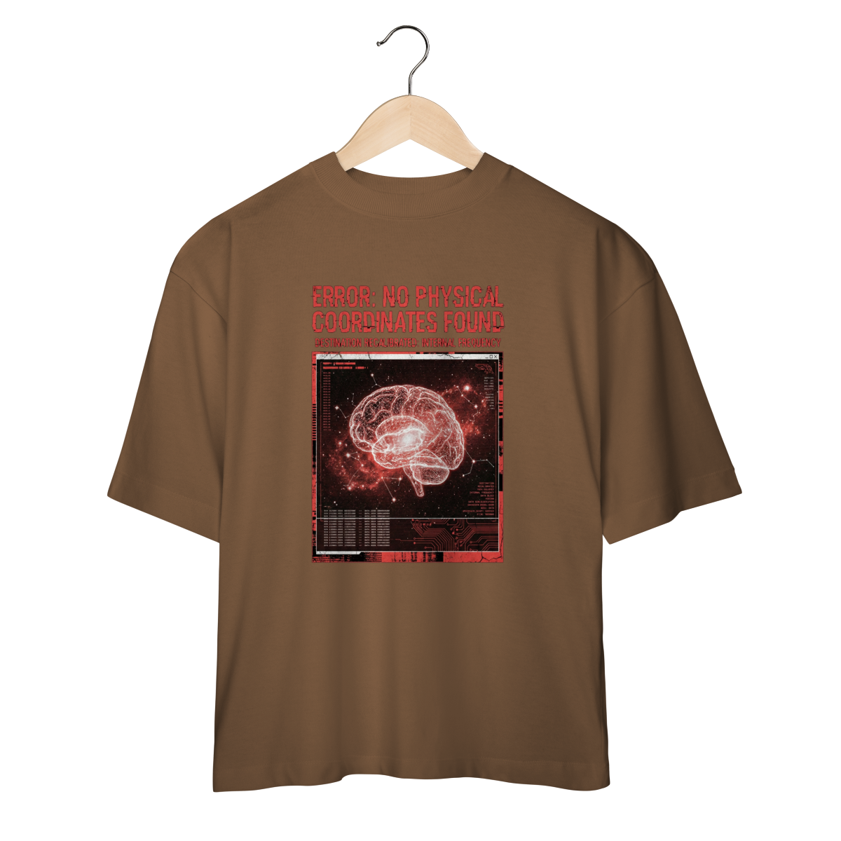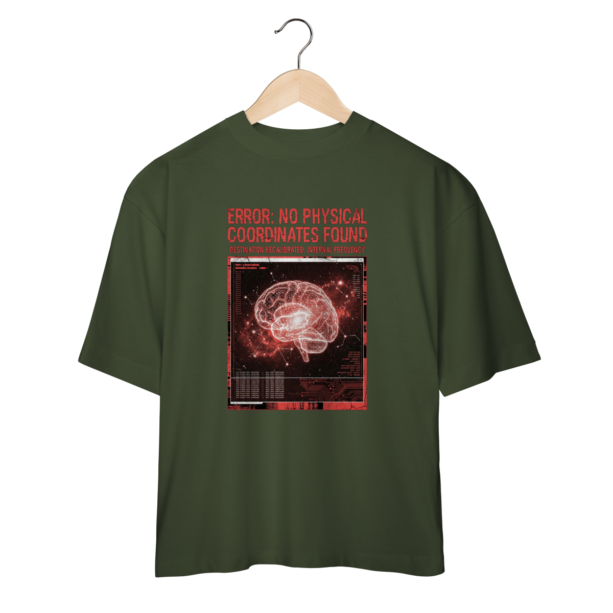 Inspirada no momento exato em que os sistemas de navegação colapsam no vácuo, a T-Shirt Glitch Protocol representa a ruptura com o mundo exterior. Feita em malha heavyweight para suportar a turbulência da rotina, ela traz a estética do erro digital fundida com a anatomia humana.
